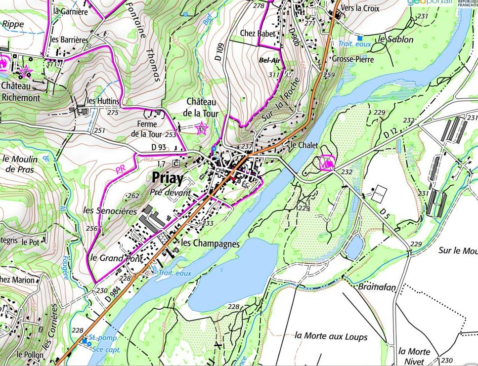– L’altitude minimum et maximum de Priay sont respectivement de 222 m et 342 m.
